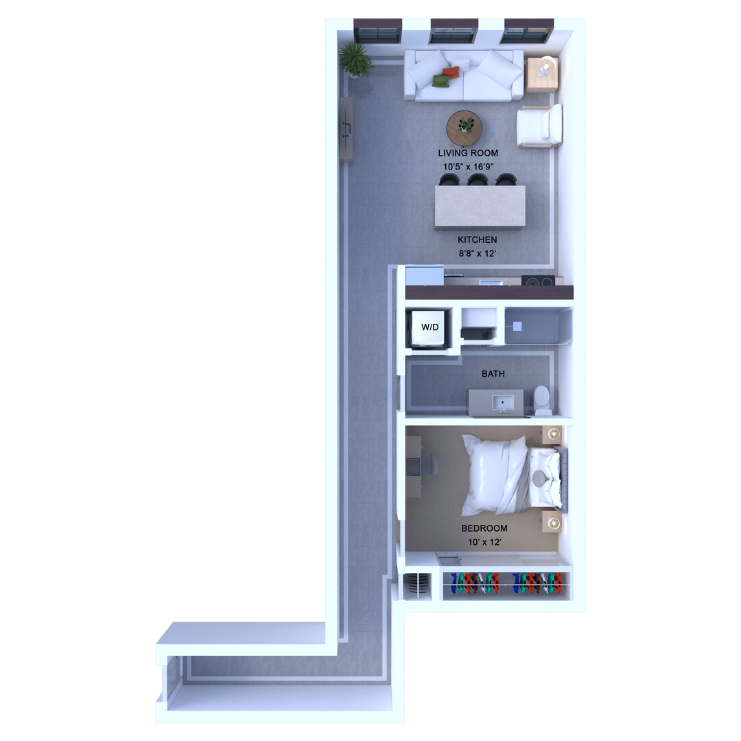 Beautiful one-bedroom apartment with grand wrap-around hallway entrance!